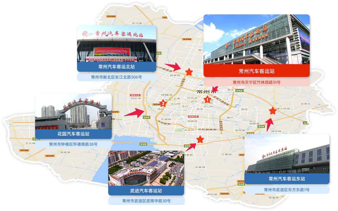 常州汽車客運(yùn)站于2010年建成,地處常州北大門,是集高鐵、地鐵、公交為一體的綜合樞紐客運(yùn)站。車站擁有11000平方米的候車、售票廳和32600平方米停車場,內(nèi)設(shè)售票窗口5個(gè),檢票窗口30個(gè),是常州地區(qū)最大的公路客運(yùn)站。