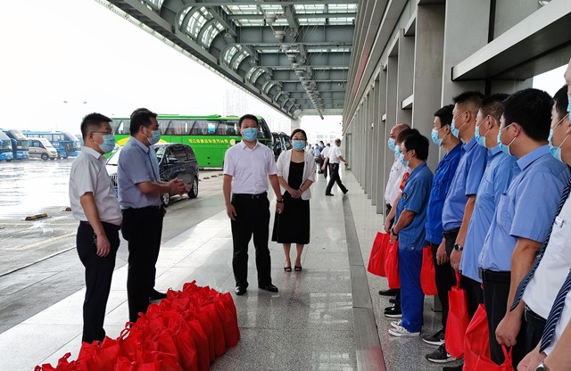 8月12日上午,市交通運(yùn)輸局領(lǐng)導(dǎo)薛曄、曹建中一行至常州汽車總站,向高溫下堅(jiān)守防疫一線的工作人員進(jìn)行慰問。集團(tuán)公司董事長兼總經(jīng)理謝星,黨委負(fù)責(zé)人、紀(jì)委書記兼工會(huì)主席王連保等陪同。