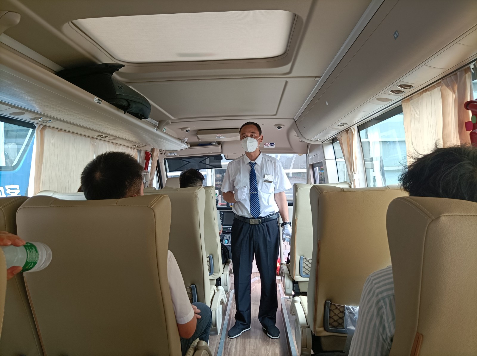 為迎接第一批旅客,班車提前做好了車輛檢查等準(zhǔn)備工作,駕駛員標(biāo)準(zhǔn)著裝提前等待,引導(dǎo)乘客上車。發(fā)車前對乘客進行安全喊話,并提醒乘客系好安全帶,佩戴好口罩,確保旅客安全通暢。