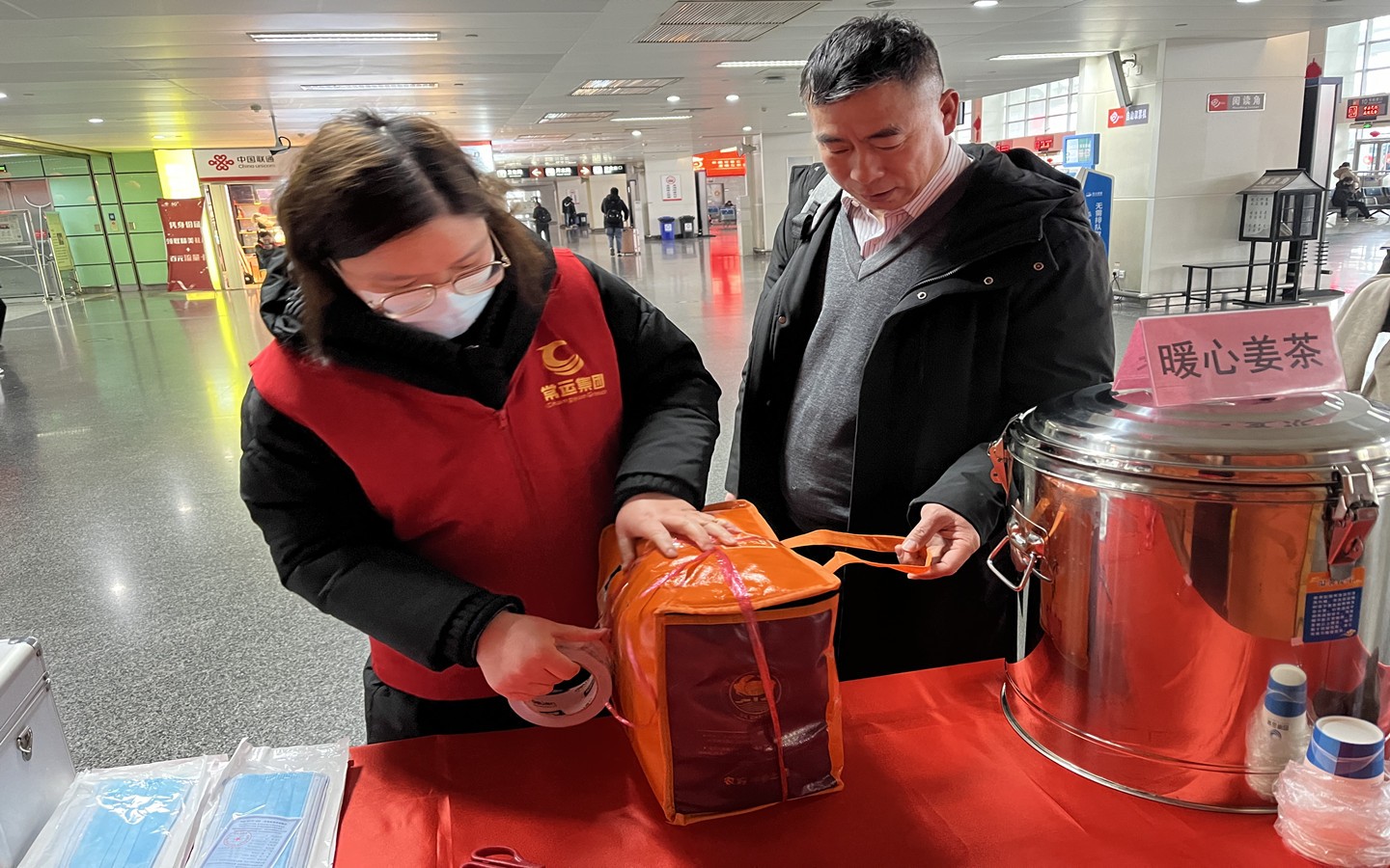 更走心是對寒冬報以熱愛。2月以來,多地降雪,常州的氣溫也較低,特別是早上六七點更冷。車站工作人員早早準備,搭起“春運溫馨服務站”,免費提供熱騰騰的姜茶,一杯杯姜茶讓車站里南來北往的過客多了不少互動,也增加了很多的歡聲笑語。
