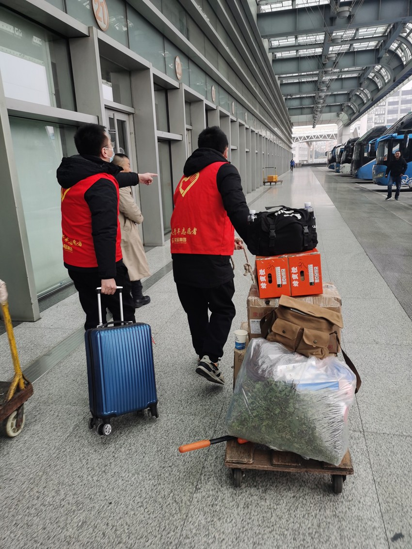 “怎樣讓我們的志愿服務更走心,更加滿足旅客進站乘車的真正剛需”,常運集團在組織今年的“愛在旅途 順風志愿行”春運志愿服務活動時首先專注這里。務工返鄉(xiāng)的旅客行李多,中老年旅客需要更多的人工指引幫助,攜帶“小候鳥”回家的既要拎著行李還要拖著孩子……各種各樣的情況,各種各樣的需求。因此,常州汽車站順風志愿服務隊將回答問詢、站內(nèi)引導、幫提行李這些乘車剛需作為服務重點,2月7-8日,志愿者們分布在實名制進站口、安檢儀旁及候車室、一樓廣場,一幕幕溫暖的故事持續(xù)上演。一對回新沂的老夫妻,拖著平板車,上面放著紙箱拎袋七八個,外加兩輛不新的折疊自行車,拖車寬到進不了閘機;一位阿姨拖著大號行李箱,手提拎包拎袋四五個,獨自上不了電梯;一個大叔是孩子在“常州汽車站”微信公眾號上幫買了票,以為要取了票才能乘車又不會操作;還有一雙干燥皴裂的手拿著一張車票,不知道在哪里檢票而不知所措,這些都在志愿者和車站工作人員的幫助下,順利地踏上了歸途,他們一連十幾個的“謝謝”和不?;仨狞c頭笑容,讓志愿者們也靦腆起來。